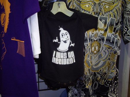 Je suis rentrée dans une boutique parce que je trouvais la musique super bonne (un remix de Ready or not des Fugees).  Trop de t-shirts d’Homer Simpson extra larges et de papiers à rouler des joints, rien d’exceptionnel à souligner, sauf euh cet adorable pyjama que je n’oserai jamais offrir à une copine enceinte.