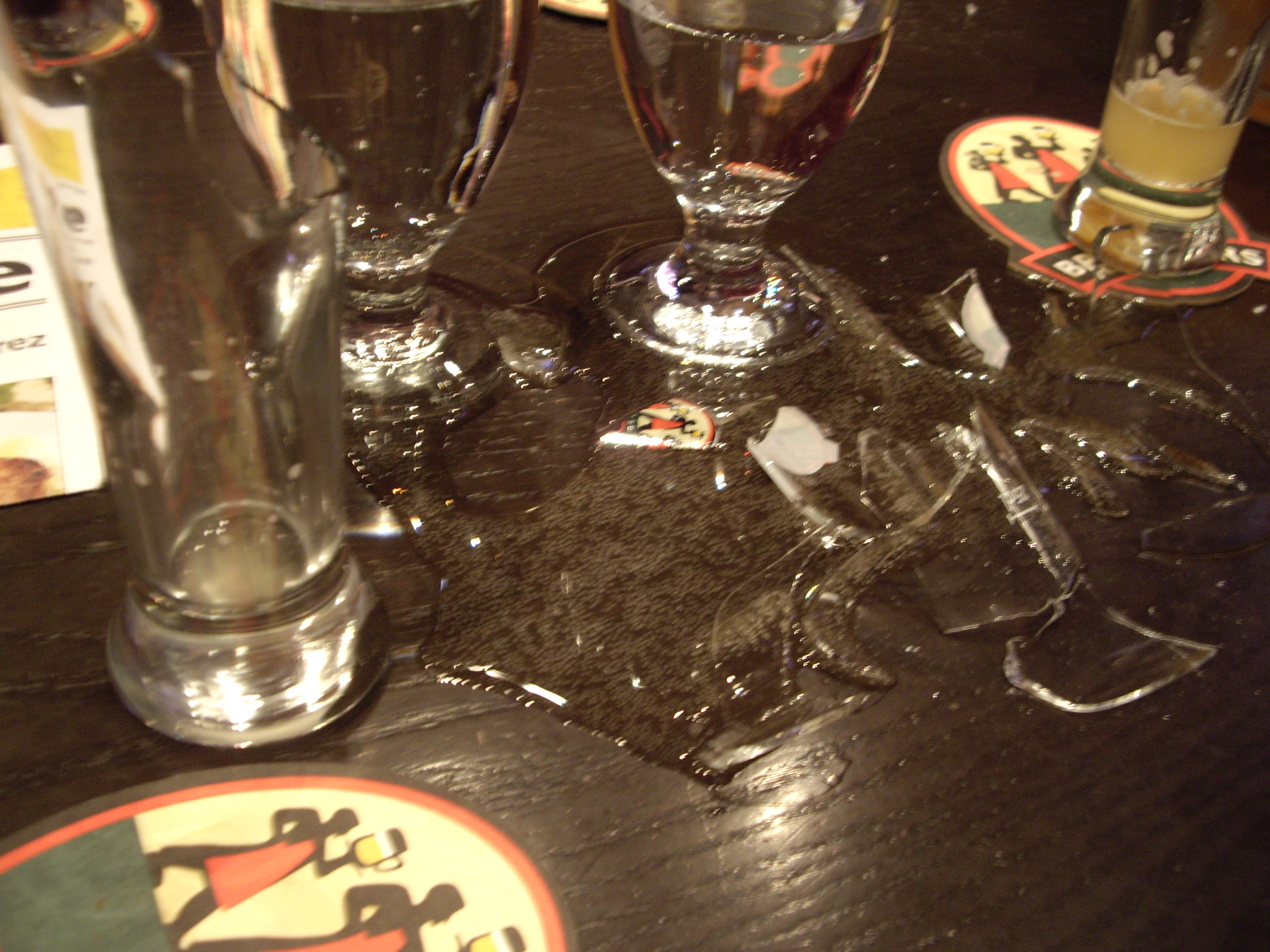 Pendant genre beaucoup de minutes, l’équipe allemande de soccer ne marque pas de point. Je regarde les joueurs, je me demande ce qu’ils se murmurent, quand ils sont tout près tout près de l’oreille d’un autre, je retire ma casquette et fuck, je donne un coup sur un verre, qui éclate, sur une table des 3 Brasseurs. Je me sens très gênée, mais tout de suite après, l’Allemagne score, je suis heureuse, sûre que c’est grâce à mon verre qui a explosé héroïquement si l’équipe approche de la victoire.