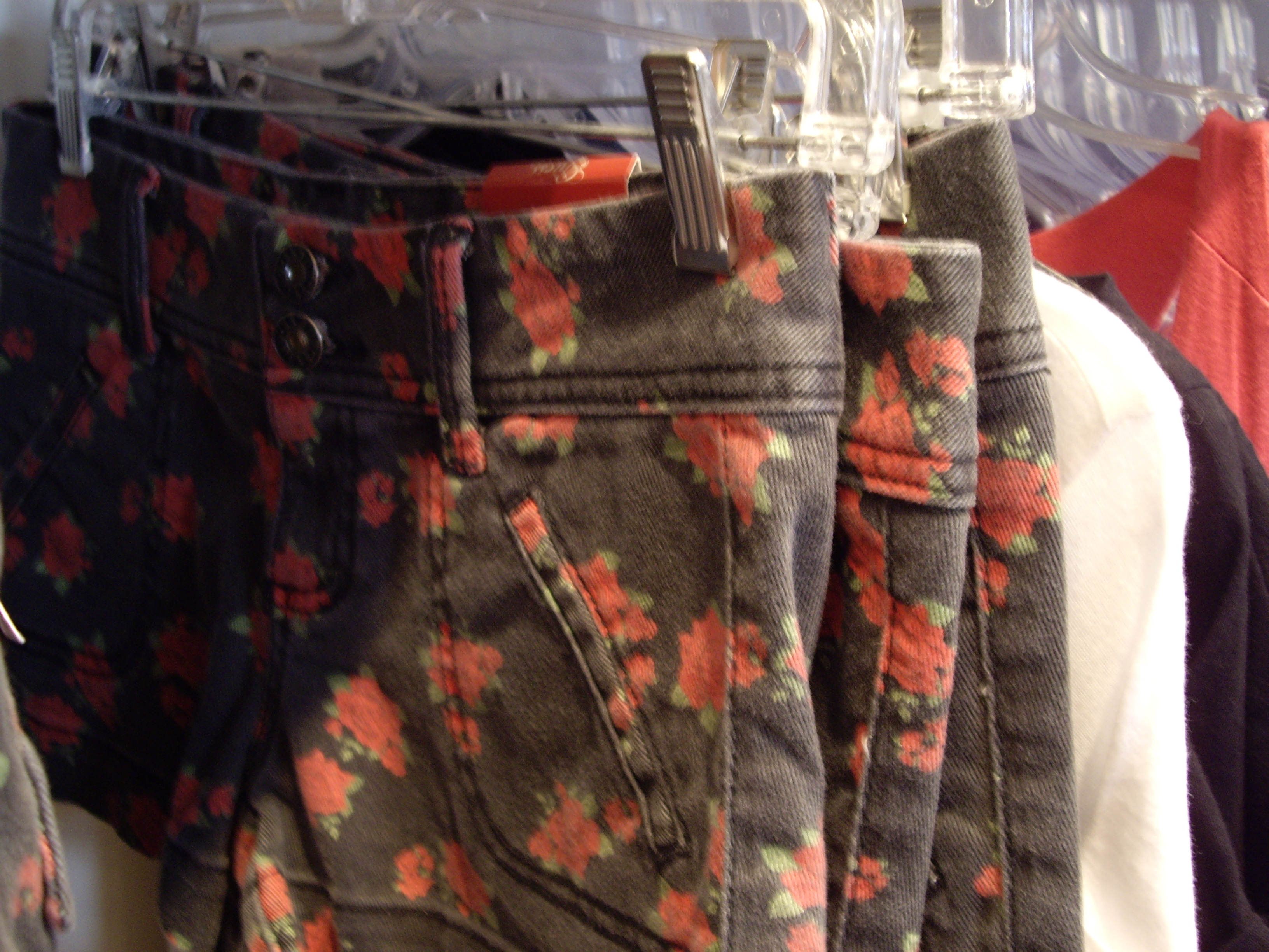 Trouvaille de la journée : des shorts Guess avec des petites fleurs rouges sanguines. Je m’imagine total à quatre pattes, la couture des shorts bien enfoncée dans ma fente, mouillant comme une salope en manque, attendant d’avoir les shorts aux genoux, baissés par mon mec pressé de me remplir.