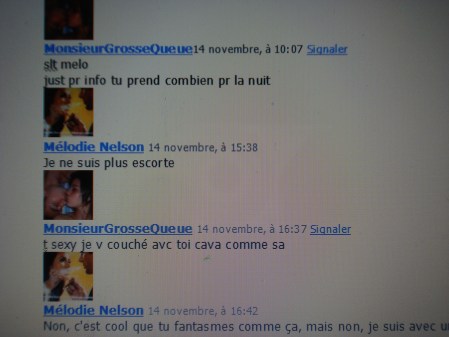 -Moi, c est ta gentillesse, ta grande douceur et ta grande classe qui m impressionneront toujours, chère Mélodie…Même façe aux questions gênantes, ou propositions osées…Bravo a toi Mélo!! Je t appréçies beaucoup!! XX