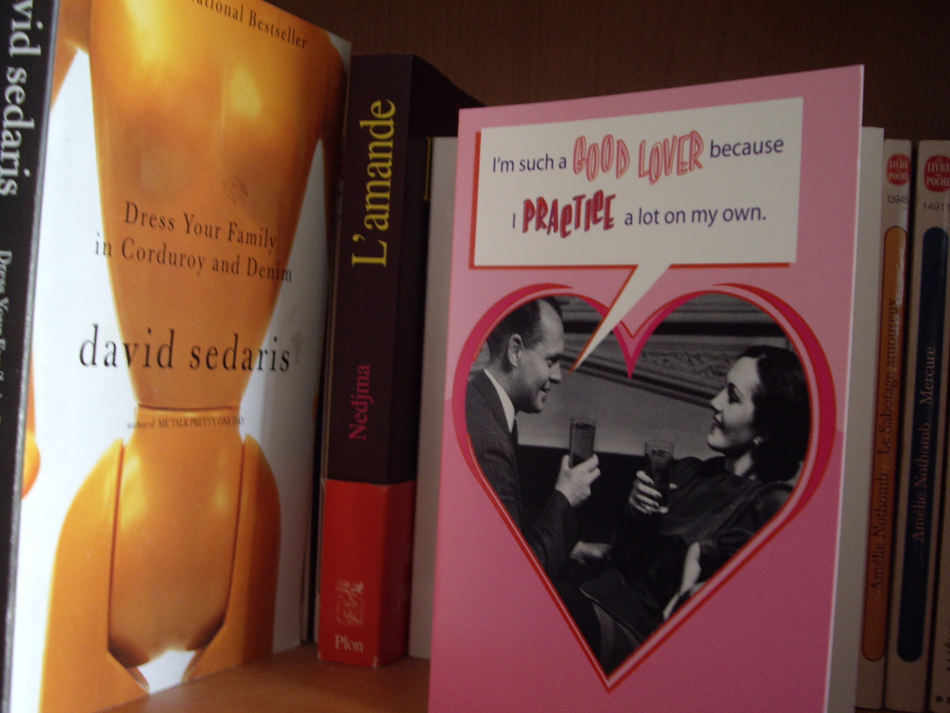 Mon mec m’écrit des courriels trop chous pendant la soirée, il m’écrit qu’il est bien avec moi, et qu’il me trouve plus jolie que toutes les filles qu’il regarde au Confessionnal, au W, et au Vauvert. Écoeuré de la faune chiante du Vauvert, il revient à deux heures du matin. Je suis au lit, le corps chaud, et doux grâce à de la crème au karité.