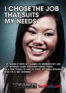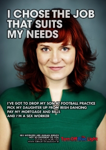 Je trouve remarquable la campagne publicitaire irlandaise de Turn Off the Blue Light. Des travailleuses du sexe sont sur des affiches, et elles ressemblent toutes à des femmes ordinaires, que nous croiserions à l’épicerie en train de regarder la date de péremption d’un jus boosté à l’Omega 3, ou que nous croiserions en bas de pyjama, retournant le film The King’s Speech, regardé la veille, en compagnie de son amoureux ou de son teckel.