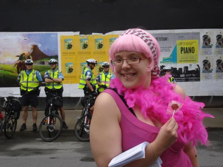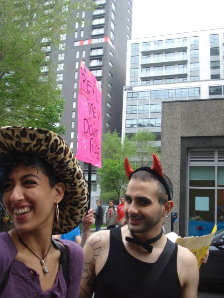 J’ai lu trop tard son courriel pour le faire. Mais nous avons parlé de seins, des miens et de ceux qu’elle voit tous les jours au gym. Oh et Misha voit aussi des tas de filles en petites culottes au gym, en petites culottes qui portent des inscriptions quasi étranges pour une heure d’aérobie ou de spinning : touch me there, spank me, always wet and horny sur les fesses. Faut juger ou sourire? Moi j’étais juste heureuse que Misha me décrive les seins qui l’entourent. Lovely discussions.