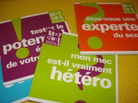 Peut-être que j’amènerai Êtes-vous une experte du sexe? demain, chez Mariposa, pour bien rigoler avec elle. (Garderons-nous les résultats de nos tests secrets?)