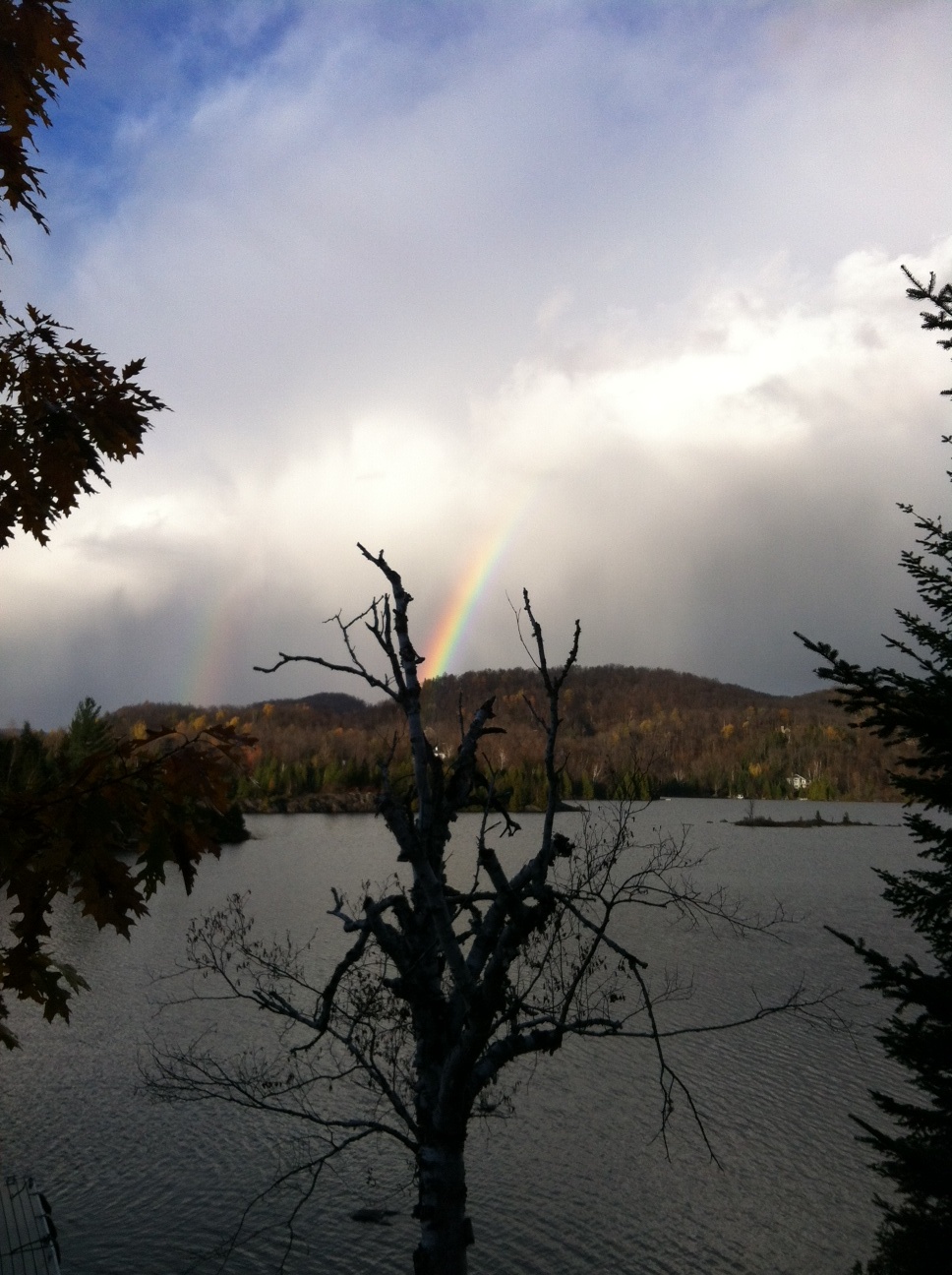 Quand nous sommes arrivés au chalet, en fin d’après-midi, il pleuvait un peu. J’ai descendu lentement les marches menant au chalet, dans des bottes à talons légèrement trop hauts pour ramasser des feuilles au râteau. J’ai terminé la bande dessinée trop chouette Valentin, que j’avais commencé la veille en mangeant des nouilles et du tofu au cari. J’ai répété trois fois à Alexandre Le Grand que j’allais faire des abdos en écoutant de la musique, mais j’ai plutôt caressé les cheveux de notre petite pendant trente minutes, avec Feist qui jouait dans le salon.
