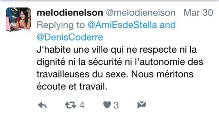 Les travailleuses du sexe sont souvent traitées comme de la merde, comme si elles ne comptaient pas, comme si leur sécurité, leur autonomie corporelle et financière ne comptaient pas.