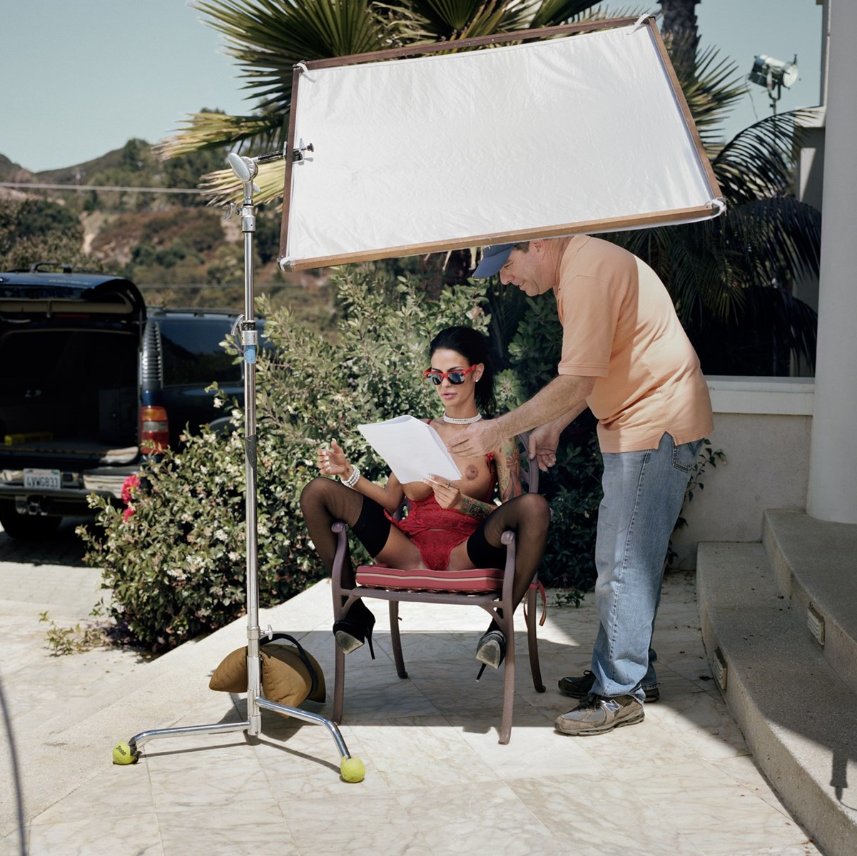 Des actrices qui sourient en se minouchant vers la caméra. Une actrice qui s’applique du vernis sur les orteils, à côté d’une vingtaine de rouleaux de papier de toilettes. Des retouches maquillage. Une séance de repassage tout nu.